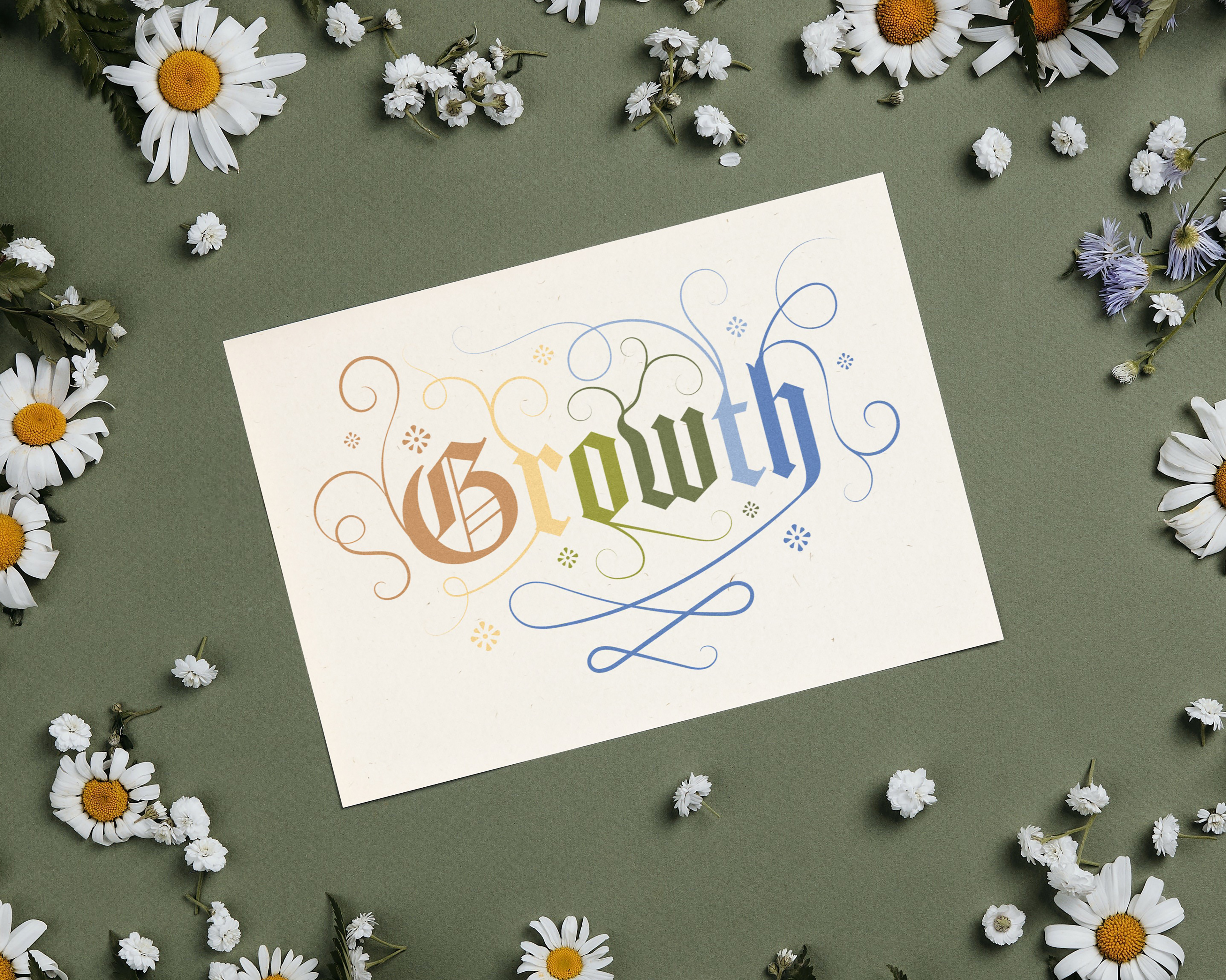 Typographic design for Color Theory class, Spring 2021, inspired by Seb Lester's calligraphic style of letteringĀ and the colors of spring.
